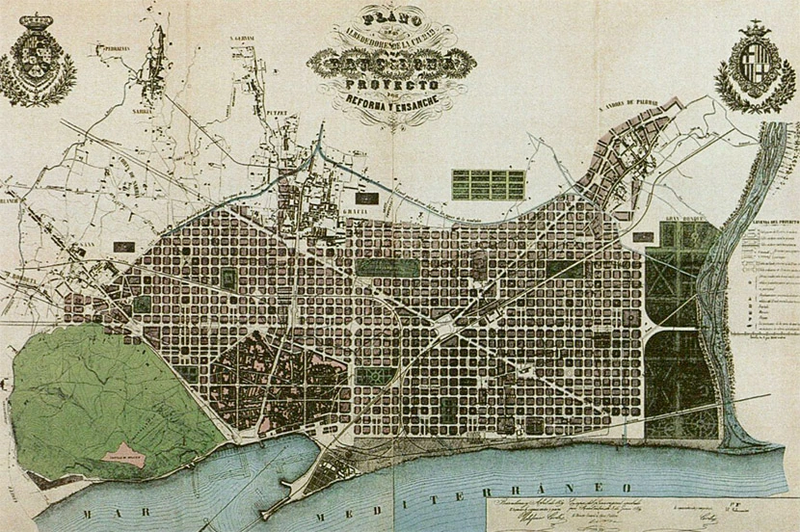 L'ottagono funzionale: Lo smusso di 20 metri a 45° su ogni angolo (il chaflán) non era estetico, ma tecnico: serviva a creare piccole piazze agli incroci e a permettere ai futuri mezzi di trasporto a vapore di curvare agevolmente.